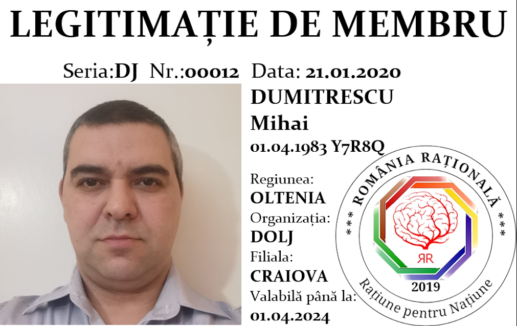 - Se numeÈ™te în funcÈ›ia de PreÈ™edinte al OrganizaÈ›iei Locale Craiova domnul Mihai Dumitrescu, identificat prin legitimaÈ›ia de membru seria DJ 00012 emisă la data de 21.01.2019